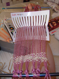 In one of my recent trips to Michael's, I found a bunch of Craft magazine which I snatched up quickly. One of them was focused on weaving and had a small paper loom. I wish I had one of those huge looms to make beautiful blankets with, but I figured I had to start somewhere and what better to start with than a free paper loom. So here is my poor attempt. It's a bit more difficult to hold and weave as the article describes but I'll continue to give it a honest try.