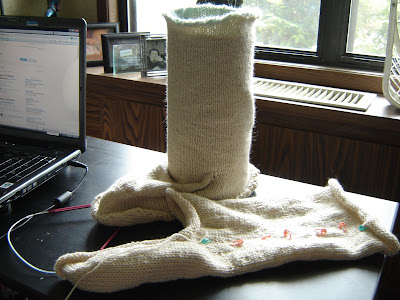 I'm actually done knitting the sushi wallet (I'll post pictures later on.) I just need to felt it next. Which is very scary! Not being in control kind of worries me. Maybe this weekend I'll grow some cojones and toss it in the washer. Wish me luck!