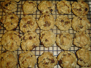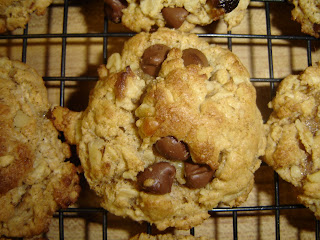 This past weekend I began baking again. It has been at least five years since I baked. I believed the last time was when I was living in nyc and I stayed up late making croissants for breakfast. I have forgotten how much I missed baking. Perhaps the reason for not baking is the fact that I had such a small kitchen when I moved to West Virginia. Three years ago I became vegetarian which led to being vegan for a year but I am now back to being vegetarian since last year. Now that I'm back on the baking horse I decided to make chocolate-chip oatmeal walnut cookies. I found the recipe at http://vegweb.com/index.php?topic=6758.0. I ended up taking almost two dozen to work the next day and the guys gobbled them all up in a matter of a few hours which was the best compliment I could've received. My boyfriend got upset that I was giving "his" cookies to them and he always complains about my cooking. Hah! I'm so glad they turned out great.