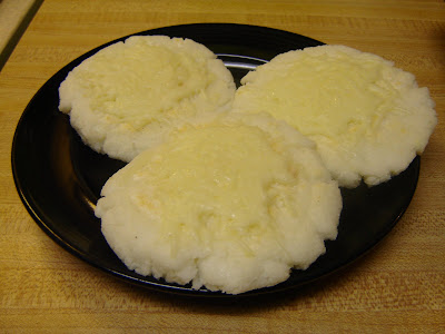 I completely forgot I had these pictures so I never bothered to post about it. Last week I made arepas. For those who might not know, arepas are a corn based bread that is grilled. It's a very popular Colombian snack. For some reason, mine don't taste as good as my mother used to make them or as good as the ones from my favorite bakery, Cositas Ricas in Jackson Heights, NY. Oh well, they were still mighty tasty with some melted mozzarella cheese on top.