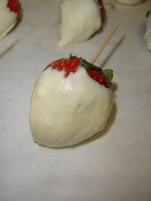This past Friday, my co-worker gave me a case of strawberries for free. So far, I've only been giving them to the sugar gliders. Tonight I've decided to make chocolate covered strawberries. I had it all thought out and I was going to make tuxedo designs and drizzle the white chocolate over the milk chocolate. Yeah... it didn't work out that way. I started by trying to melt the white chocolate in the microwave because I am immensely impatient. I ended up burning it. Finally, I gave in and did the double boiler method. It worked out perfectly. While I was dipping them I figured this is going to be a lot of strawberries if I do the milk chocolate ones and the designs on them. For now, I'll just do milk chocolate and leave the rest for another day. I might go for the strawberry shortcake tomorrow.
