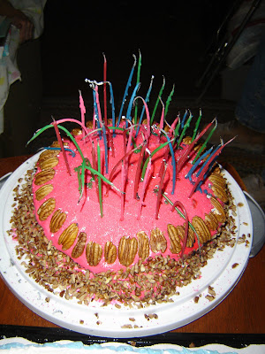 Mom's Red Velvet Cake Before and After the blowing of the candles.