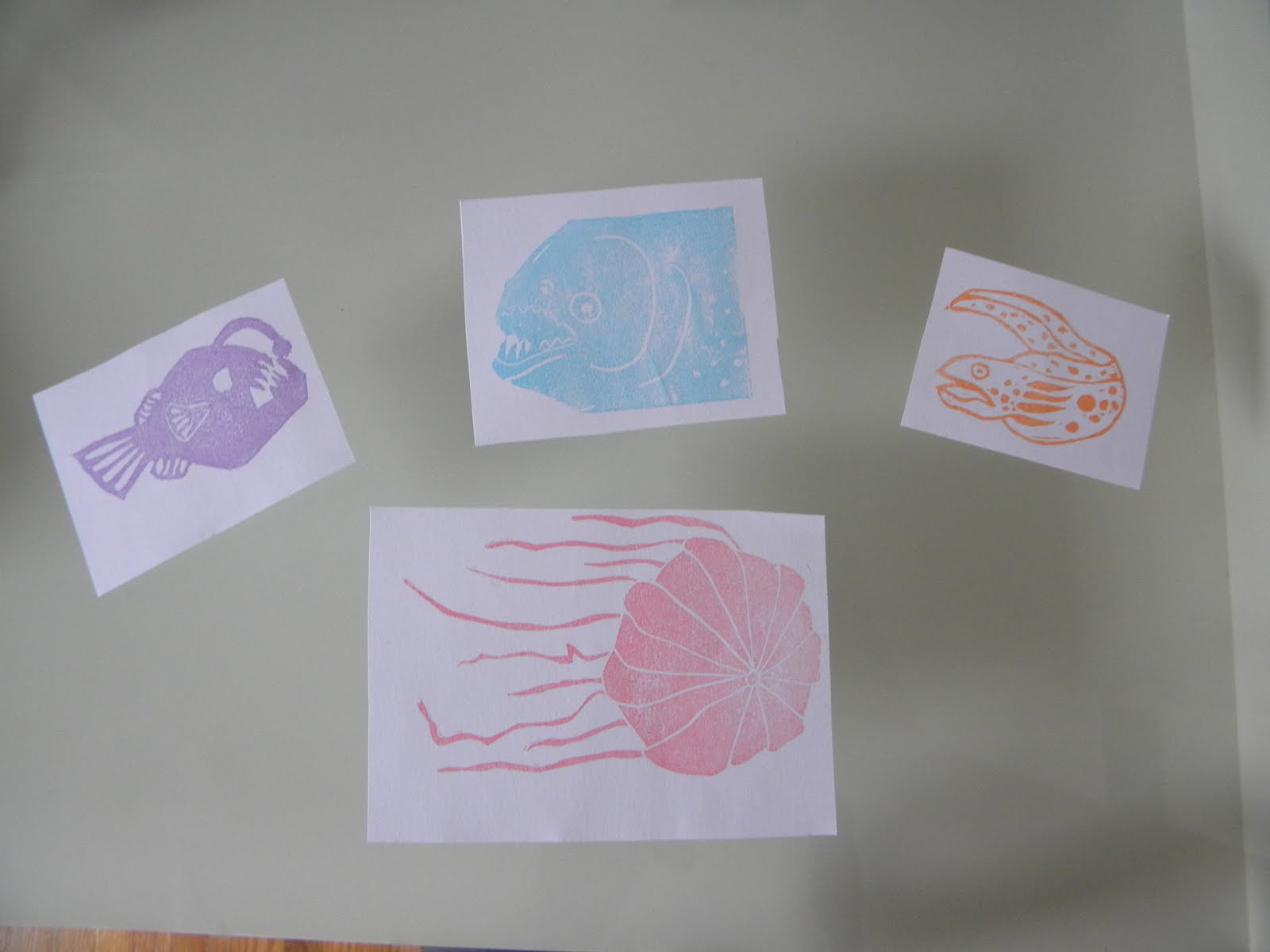A few years ago I started toying with carving stamps out of old erasers and X-acto knives. After that I began letter boxing (google it if you don't know what it is, it's so much fun). I've now upgraded my supplies and and beginning a collection per say. I have a theme of aquatic life. The goal is to start off with ten, give or take and set up shop.
